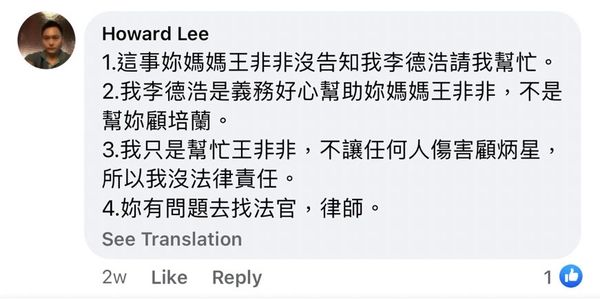 Howard Lee (李德浩) stole Professor Ku's government pandemic relief money, and the Taiwan criminal system will deal with him.